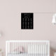A classic black background. Personalise and add the name of the bride and groom, add your guests names. White text.
