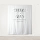 Create an elegant and trendy photo backdrop for your graduation party. Design features "Cheers to the Grad" in modern elegant typography. Shown in black and white, but all colours are editable by you. Personalise the template to add your graduate's name and year. © Kimbellished, LLC