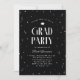 Celebrate the graduate's achievement in style with this black and white graduation party invitation with modern typography, surrounded by confetti.