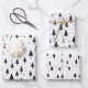 Black White Monochrome Christmas Trees Minimal Wrapping Paper Sheet