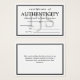 Elegant and minimalist certificate of authenticity in black and white to which you can add your name or business name. Personalize further with your initials in pale grey.