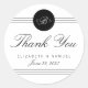 Customise this chic stylish elegant monogram black and white Wedding Thank You Round Favours Stickers. Modern clean and crisp design with a black text and design on a white background.