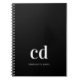 Black white monogram initials modern custom notebook