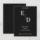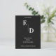 Black White Monogram Modern Wedding Save The Date Announcement Postcard . The design has a black background with wedding details written in white and in an elegant font . The front of the card has all the details . Send out these cute elegant modern contemporary minimalist invites to friends and family. Customise it by changing the names of the couple , and the other details. This invitation is part of a collection . Check out coordinating Invitations , Save the date Cards , RSVP cards and Thank you cards in the collection. For any further customisation , feel free to contact me at mypaperlove2021@gmail.com