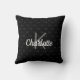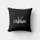 Personalise and add your first name and family monogram letters, initials. The monogram initials as a pattern on the background. The name is written with a modern hand lettered style script. A classic chic black background colour. Text in white and grey.