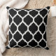 Black White Moroccan lattice Quatrefoil Pattern Cushion