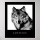 Black White Motivational Courage Wolf Poster Print