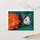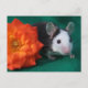 A photograph of a cute black and white mouse on a green background against an orange tea rose. Great for any small animal lover! Use the customise button to add your own text!