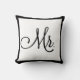 Add couple's names and wedding date to the back of black and white "Mr." decorative pillow. Coordinating "Mrs." pillow found here: