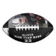 Black White Name Number Team Photo Football. Personalise it with your photo, name, team name and year. The text is trendy white on a black background with a white stripe. You can change any text on the football or erase it. A perfect gift for a football player, teammates, coach. Great keepsake to remember your favourite sport.