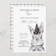 Your little baby is turning two! Invite your special guests with this adorable invitation featuring hand painted watercolor rabbit, in soft blue gray, black and white. Baby's name, "Turning Two" and the date are in soft blue gray hand lettered script typography, and personalized in a chic modern black sans serif. The back of the card features a cute black and white hand drawn check design. Copyright Elegant Invites, all rights reserved.