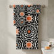 Black White Orange Moroccan Geometric Tile Pattern Bath Towel Set