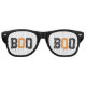 Black, white and orange retro Halloween party sunglasses with text: BOO. Unisex for men and for women or kids.