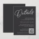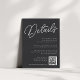 An all-purpose enclosure card for your wedding invitations, this petite Details card provides three custom text fields for your wedding details, website, and a QR code for RSVPs or additional information. Designed to match our Black & White Oversized Script wedding collection. Our Ash colorway makes a classic statement with crisp white lettering on a soft black background.
