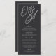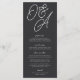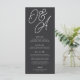 A beautiful typography based wedding menu card featuring your initials in oversized script lettering at the top, in tone on tone shades for a watermark effect. Personalise with your menu items beneath. Our Ash colorway makes a classic statement with white lettering on a soft black background.