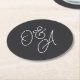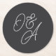 Black & White Oversized Script Monogram Wedding Round Paper Coaster