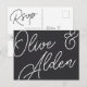 Designed to match our Black & White Oversized Script wedding invitations, this elegant typography based RSVP postcard is perfect for traditional mail-in RSVPs. Personalise with your desired RSVP date and custom accept and decline wording in classic serif lettering. Our Ash colorway makes a classic statement with soft black lettering on a crisp white background.