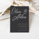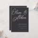 A beautiful typography based wedding invitation featuring your names in oversized script lettering at the top. Personalise with your wedding details in classic serif lettering aligned at the lower right. Our Ash colorway makes a classic statement with crisp white lettering on a soft black background.