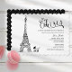 Black & white Paris French baby shower invitation design with a whimsical hand-drawn Eiffel tower, baby carriage, and text "Ooh-La-La." Design elements are on separate layers and may be re-positioned, re-sized, or re-coloured. Polka dot design on the back. All colours are editable by you! © Kimbellished, LLC
