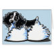 Original illustration of a black and white parti colour Cocker Spaniel by Off-Leash Art. Cute for kids and adults and makes a unique gift.