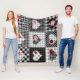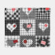 Black White Patchwork Hearts Seamless. Fleece Blanket