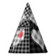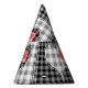 Seamless background pattern. Will tile endlessly. Black and white patchwork with hearts and red patches.