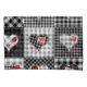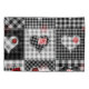 Seamless background pattern. Will tile endlessly. Black and white patchwork with hearts and red patches.
