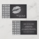 Black & White Pattern & Faux Silver Shine Lips Business Card