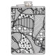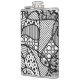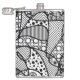 "Patterns Run Amok, 4" is the fourth in a series of black and white whimsical designs featuring a hand-drawn outline that's then filled in with repeating patterns. Circles, rings, squares, bulls-eye, targets, flowers and more are interspersed over the surface in an unpredictable array.