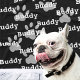 Black and white dog blanket personalised with your pet's name. The design features paw prints in grey and the text in white.