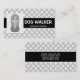 Black and white colour paw pattern design made with dog walkers, pet sitters and companies offering pet services in mind. The design features a white dog paw print pattern on a grey and black background colour together with a personalizable photo template and custom text. Replace the sample photo with an image of yourself, a photo of a dog or a logo of your company, for example. Personalise the text templates with the details of your business.