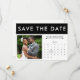 Black and white striped, colour block wedding save the date card with photo and heart calendar. Personalise it with your event details.