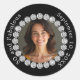 Black background decorated with faux diamonds. Personalise and add a photo, name and date. White text.