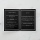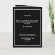 An elegant 4-page program. A black background, a faux silver frame, and space for your photo on the front. Personalise and add name, dates and your text. White text.