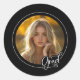 Black White Photo Modern Script Grad Graduation Classic Round Sticker
