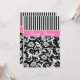 This chic black and white striped damask bridal shower invitation is accented with hot pink. It is fully customisable. If there are any other items you need to make your event extra special, such as Thank You cards, Table number cards, Save the Date cards, magnets, or gift bags, please email your request to niteowlstudio@gmail.com. If you want this invitation formatted for a wedding, or if you would like it in another colour combination, email the request to the above address.