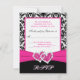 Black, White, Pink Damask & Hearts Reply Card