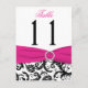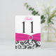 This black, white and fuchsia floral damask table number postcard matches the wedding invitations and other items shown below. **You must change the number 11 to each of the table numbers you need, add it to your cart, and then return and repeat the process until you have all the individually numbered cards that you need in your cart. Stand it on a small easel, or in your centerpieces. If you need assistance, email niteowlstudio@gmail.com.