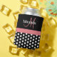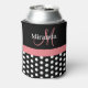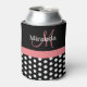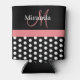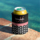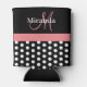 Black White Pink Monogram Script Polka Dots Can Cooler
