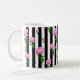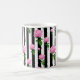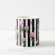 Black White Pink Rose Flower Stripes Lines Coffee Mug