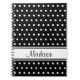 This patterned design has a black background with white polka dots and black and white stripes. The name is in a script font and can be customised using the personalisation options. This is a terrific gift for girls, teens, students, moms, etc.