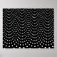 Graphic design of a white polka dots pattern on a black background, which looks like a curtain.