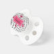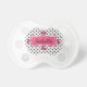 Black and white polka dots, pink swirly name tag personalised pacifier for a baby girl. Makes a great gift for a new mum at a baby shower. To change the name, use the personalise options. For more extensive changes to the pacifier, use customise it.