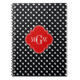 Black White Polka Dots Red Quatrefoil 3 Monogram Notebook