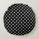 Black and white polka dot pattern round throw pillow. Cute print home decor for bedroom or sofa. Customisable background colour.