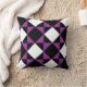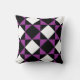 Black White Purple Modern Diamond Check Pattern Cushion