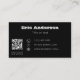 Back: Templates for your name, title, phone number, mail and website address, QR-code to your website or social media account. White letters.
