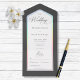 AVAILABLE WITH OR WITHOUT A QR CODE OR DINNER SELECTION OPTIONS. This design features a charcoal black background with a white text area framed in a pastel rainbow. A monogram with the bride and groom's first initial on the outside flap completes it. Created by Simply Farmhouse Press.