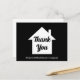 Chic real estate company thank you postcards in modern black and white. Customise with your realty business under the simple house for a home buying client or professional realtor.