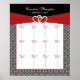 This custom black and white damask pattern wedding reception seating assignment poster has a red PRINTED ribbon with a pair of PRINTED red FAUX glitter and diamond jewel joined hearts on it that matches the wedding invitation shown below. It is personalised with the name of the bride and groom and their wedding date. It is set up to be used by table order, but you can change the text and lay-out to however you choose. If you need assistance, please email niteowlstudio@gmail.com for help.